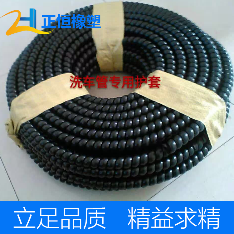很久以前,橡膠管被使用在各個行業,液壓系統,吸排水,吸排沙,輸水,輸油等等各個領域。在每個使用的過程中總是難以避免的被磨損、被擠壓,橡膠管在使用的時候很多地方例如挖掘機、破碎錘、隧道寄、洗車機等等行業會有比較高的脈沖或者壓力來完成作業,并且會與地面或者設備有摩擦,那么這個時候橡膠管往往在外皮收到磨損的時候再作業就會容易爆管、漏油,產生各種意料不到的事故,所以人們在使用的時候發現橡膠管的外皮一旦有磨損就抓緊把橡膠管更換掉,產生了極大的生產成本。在這個時候我們液壓行業的前輩發明了一種保護橡膠管的神器-護簧,護簧是由普通鋼絲纏繞成彈簧狀拉開一定的長度穿在橡膠管上,使橡膠管在使用的過程中避免磨損、擠壓,在這個時候就使橡膠管的壽命得到了極大的延長,在使用了護簧很長的一段時間后,人們發現護簧還有一定的弊端,那就是在使用一定的時間以后,護簧受到磨損、雨淋、暴曬,這個鋼鐵制成的護簧會生銹、會損壞,人們容易被扎到手,并且在護簧壞了后橡膠管有時候并沒有作業多少還和新的一樣,那么護簧不能更換橡膠管又使用不了多長時間了。聰明的前輩們又發明了我們現在各個行業都極力推薦的螺旋護套,螺旋護套是由尼龍或者高強度PP擠出纏繞成型,它有效的保護這橡膠管360°不被磨損,并且防塵,而且它有一個大的特點,就是可以更換。一米100元的橡膠管只需要幾元錢的螺旋護套就能被保護很長時間,并且只要橡膠管在使用的過程中沒有別設備過度使用損壞,外皮有螺旋保護套保護著,護套壞了可以更換,理論上是可以無限期的使用的,僅僅需要幾元錢的護套就行,比起原來1/10的實際成本可能都沒有呢。螺旋保護套與橡膠管就像一對戀人,無論多大的風雨,我來保護你。河北正恒橡塑制品有限公司生產的螺旋保護套完美、有效、竭盡全力的保護您的橡膠管,歡迎蒞臨指導、洽談合作!